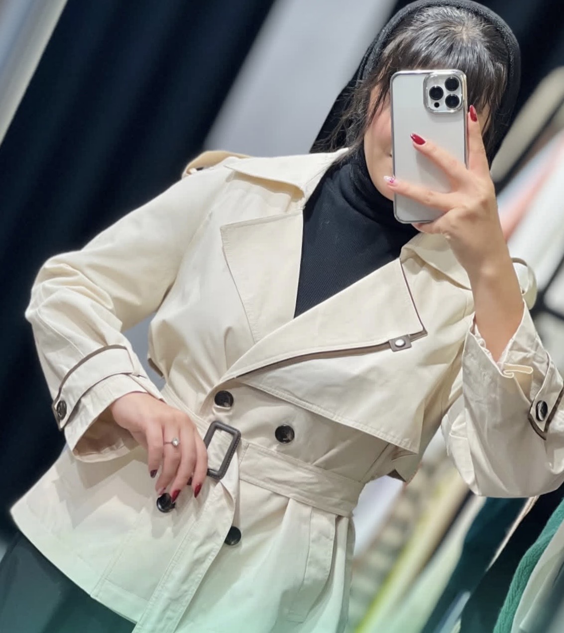 بارونی خیلی خاص طرح ترک تک رنگ در دو قد موجوده قد بلند کار:۷۶ قد کوتاه کار:۶۳ سایزMدور سینه۹۸قد آستین۶۸ سایز Lدور سینه۱۰۴قد آستین۶۸ سایزXLدور سینه۱۰۸قد آستین:۶۸ سایزXXL دور سینه۱۱۲ قد آستین۶۹
